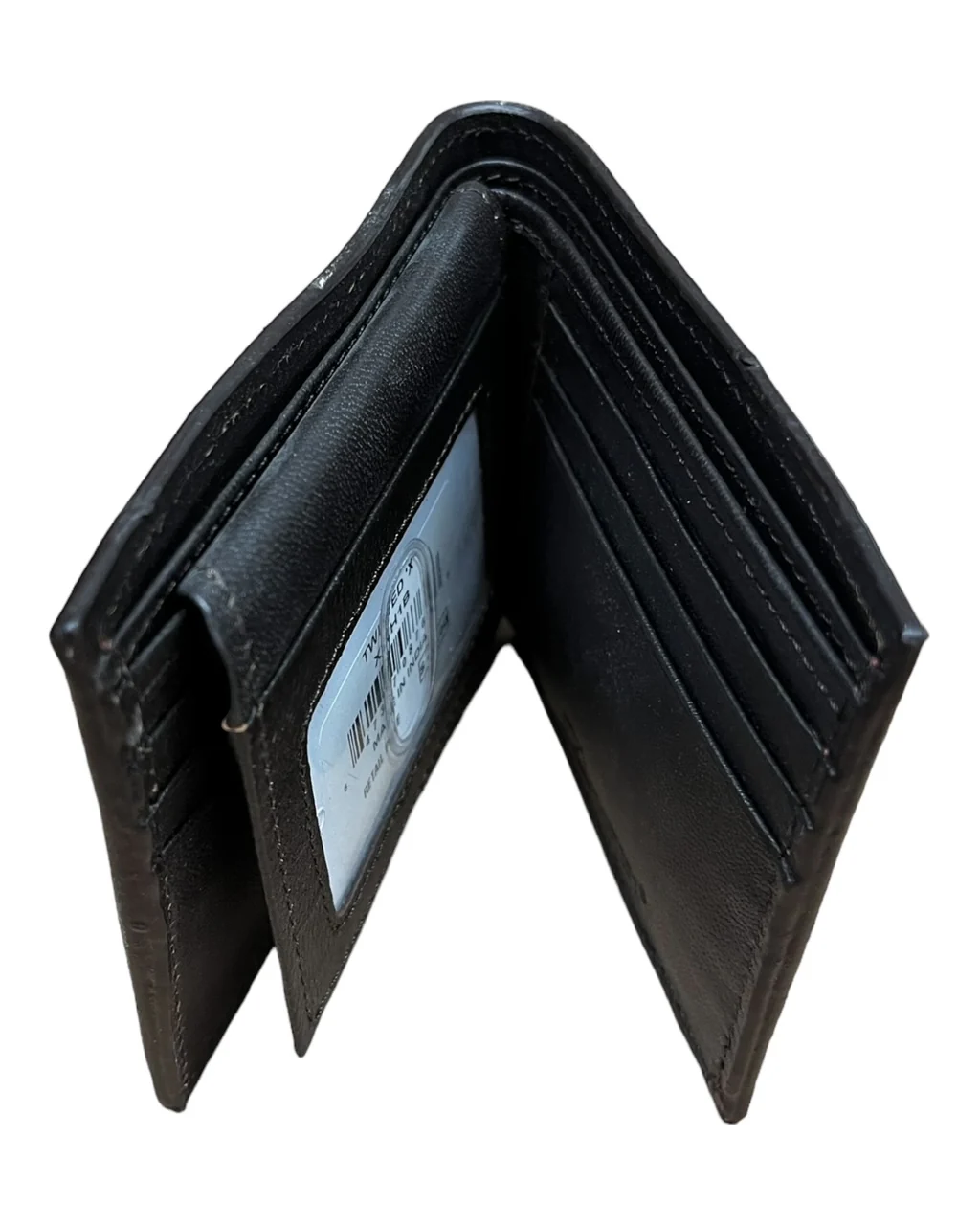 Floral and basket weave tooling with buck lace and inset barbwire Twisted X logo. Bill separator, ID flap and 6 card slots.